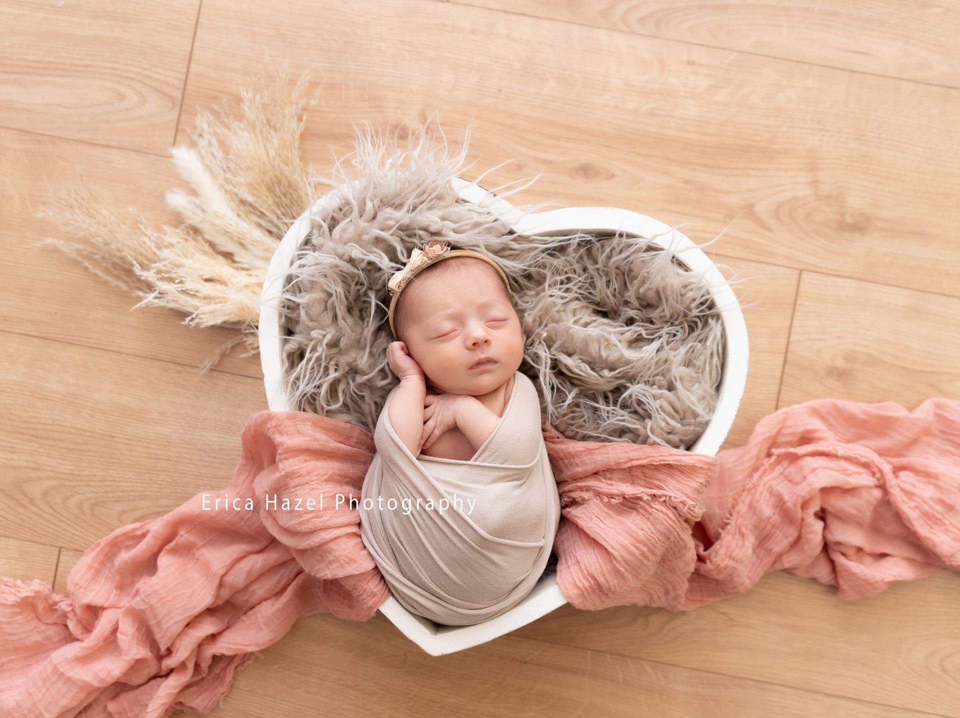 Here at Erica Hazel Photography I am here to help capture those precious first days of your newborn's life with a personalised photoshoot tailored to your individual taste. With feeding breaks and a warm, comfortable environment, your newborn session will never be rushed and we aim to create a stress free environment for yourself and your baby. I have a large selection of props, outfits, comfortable wraps and accessories to help cater your session to your individual style. You are always welcome to bring along your own personal items such as a teddy, blanket or anything sentimental and we can incorporate them into the photoshoot. Additionally , you are also welcome to include props that correspond to your and your partners careers/ jobs if you would like eg: fireman bringing a hat. This could be a fun and unique take on your newborn photoshoot.
